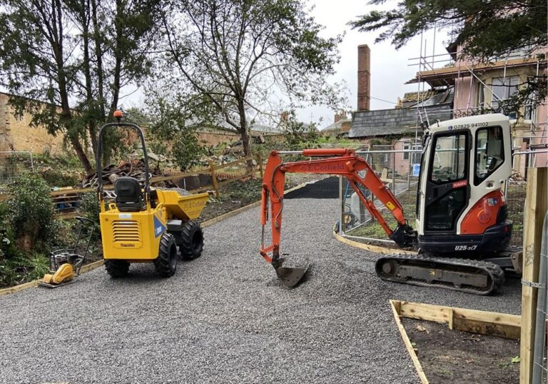 Land Regrading and Hard Landscaping Prep: Import and export of aggregates, compaction, and formation layers ready for landscaping or construction.